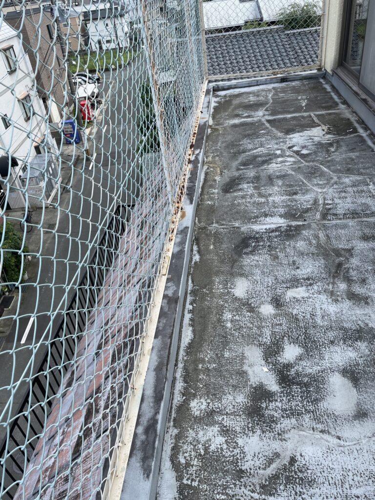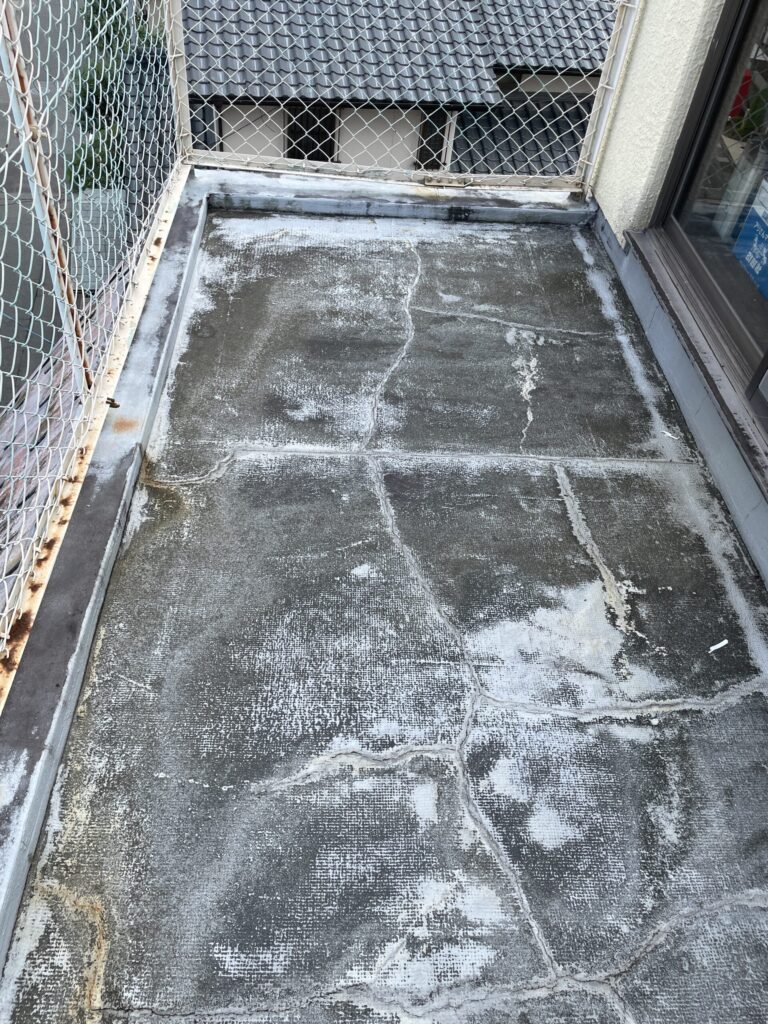 大きい劣化症状としては、ベランダの防水層が剥がれており、雨漏りの原因にもなります。