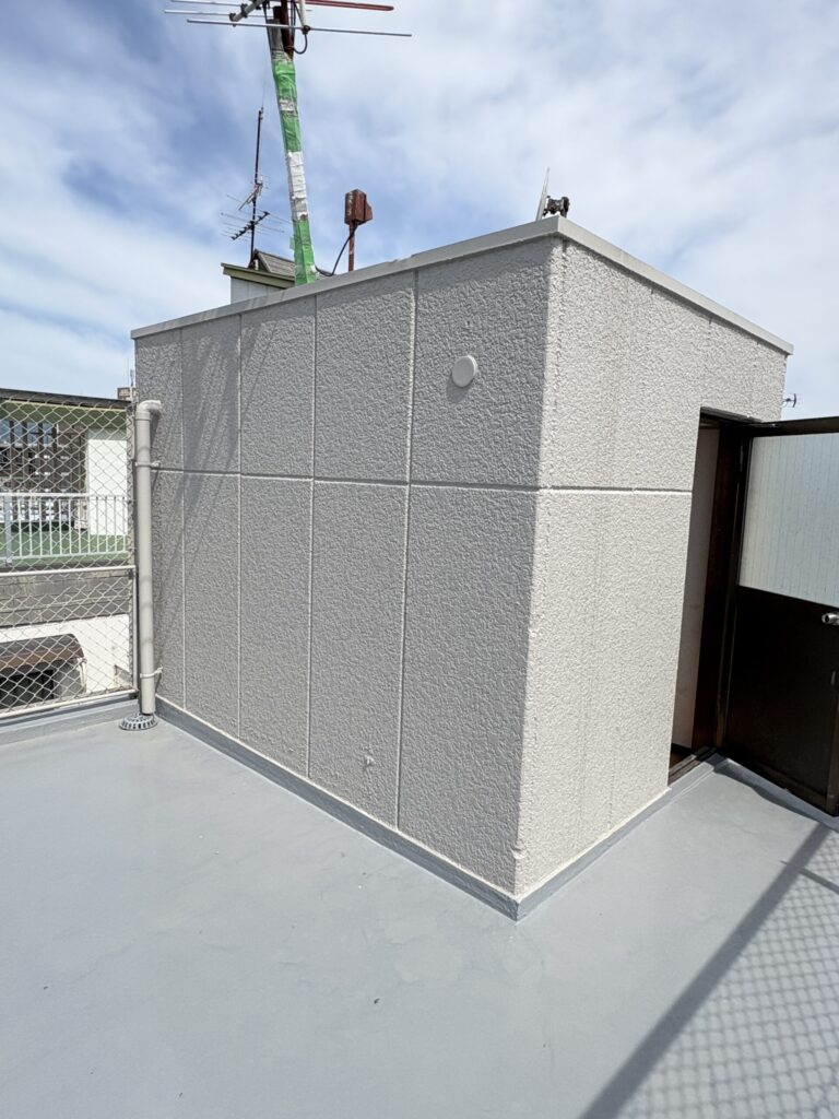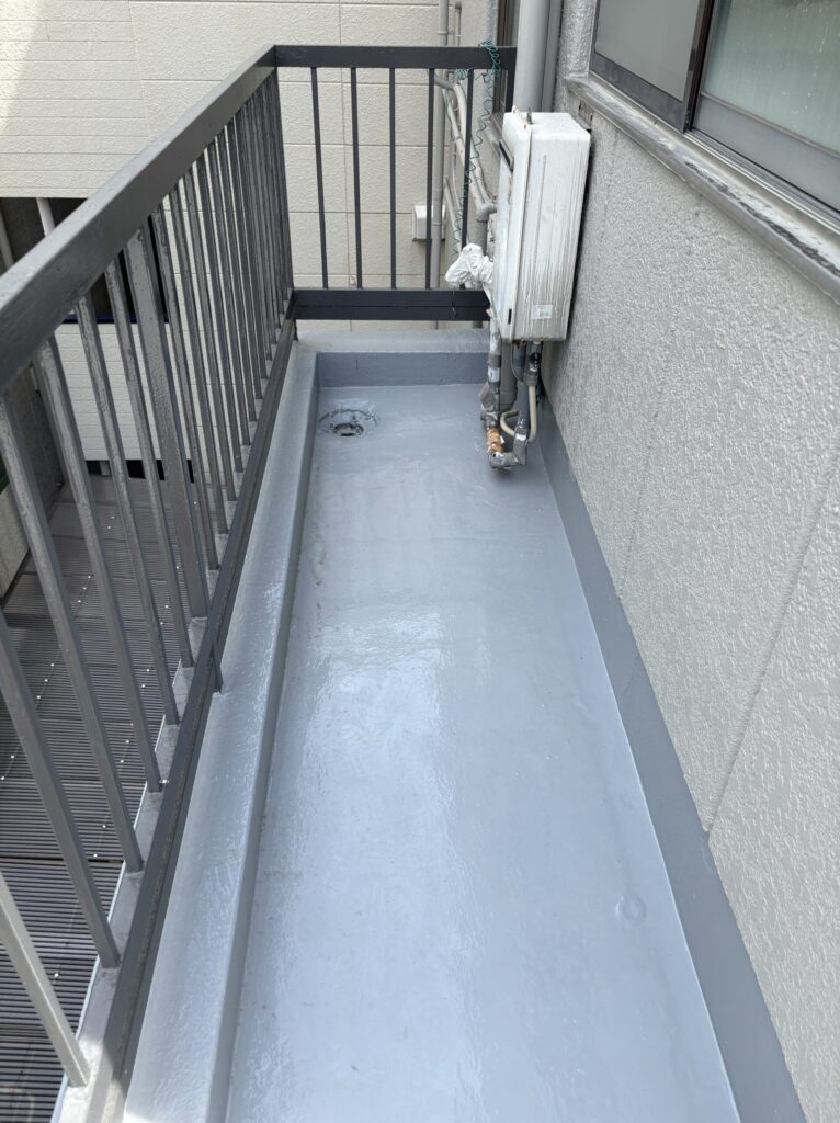 屋上ベランダ面にはウレタン防水を新設しております。見た目も綺麗になりますし、今後も安心して過ごしていただけます。