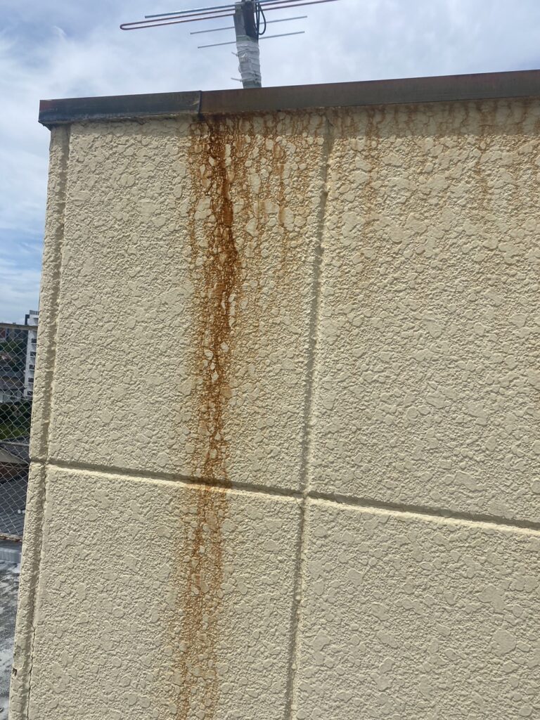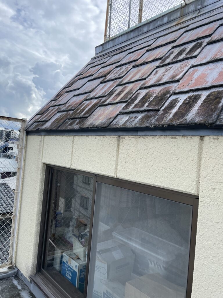 軒天の一部剥がれや、チョーキング、付帯部の塗膜の剥がれ、色褪せ、屋根に苔カビ、防水面などの剥がれなどがありました。